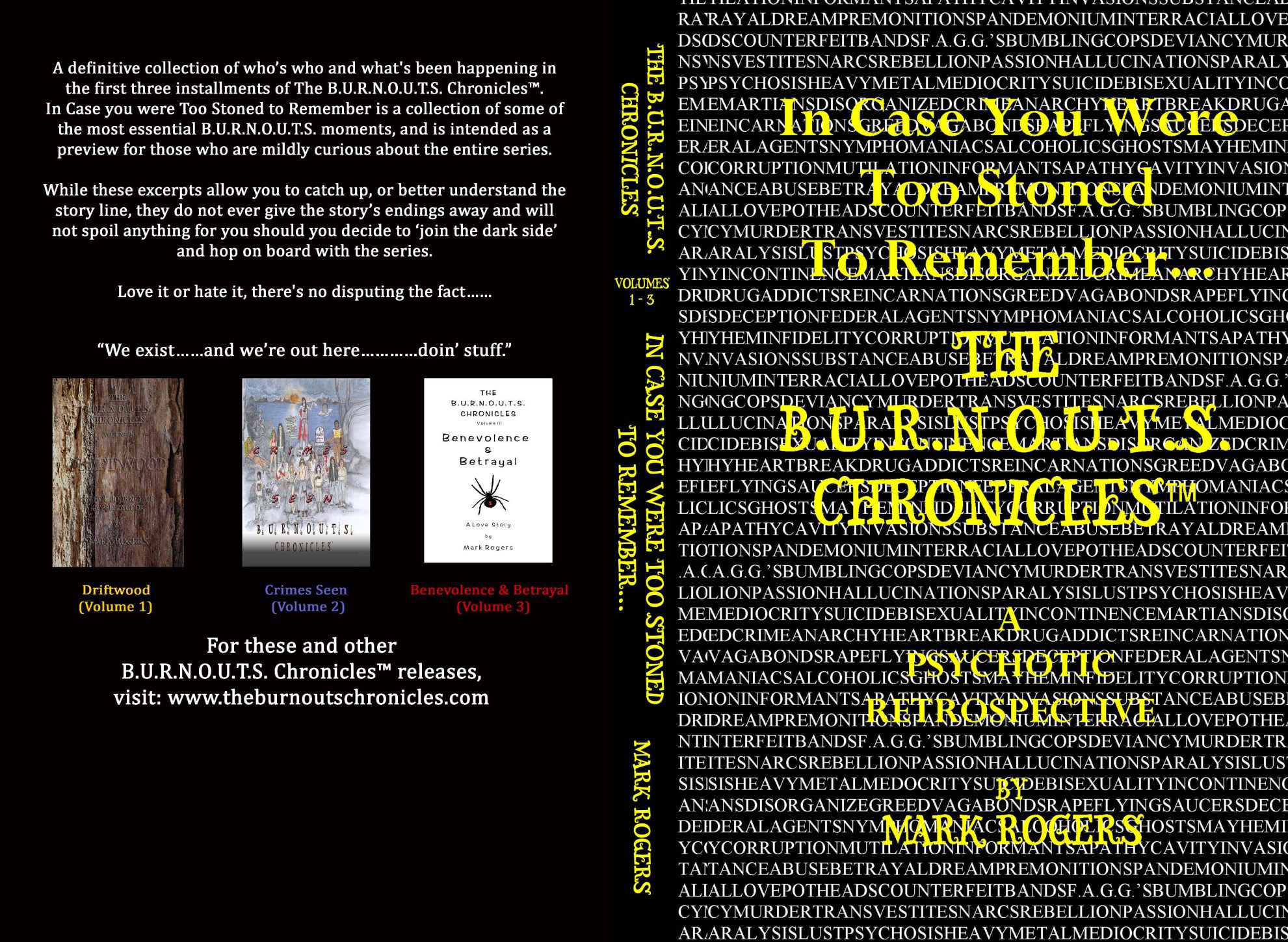 An introduction to The B.U.R.N.O.U.T.S.™ for new readers, or a refresher for others, A definitive collection of who’s who and what has happened in the first three installments of The B.U.R.N.O.U.T.S. Chronicles™.