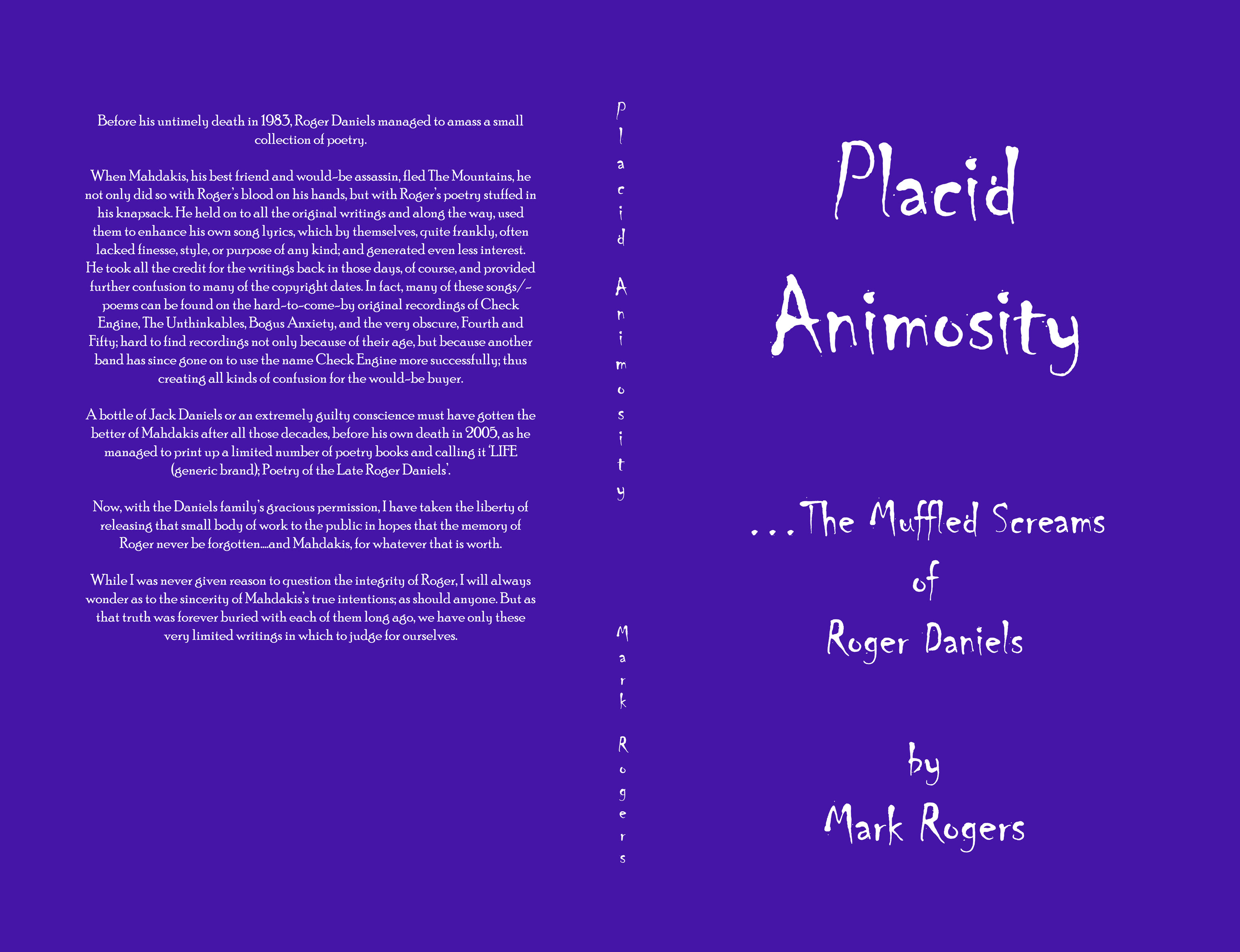 A bottle of Jack Daniels or an extremely guilty conscience must have gotten the better of Mahdakis after all those decades, before his own death in 2005, as he managed to print up a limited number of poetry books and calling it ‘LIFE (generic brand); Poetry of the Late Roger Daniels’.